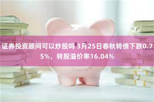 本站消息,3月25日春秋转债收盘下跌0.75%,报134.45元/张证券投资顾问可以炒股吗,成交额3057.39万元,转股溢价率16.04%。
