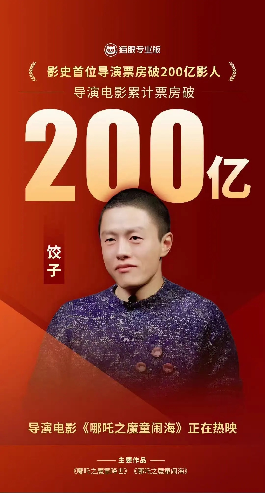 近日,饺子仅凭借两部《哪吒》,成为中国影史首位票房破200亿的导演,冲上了热搜。