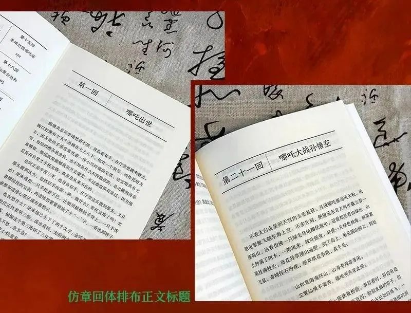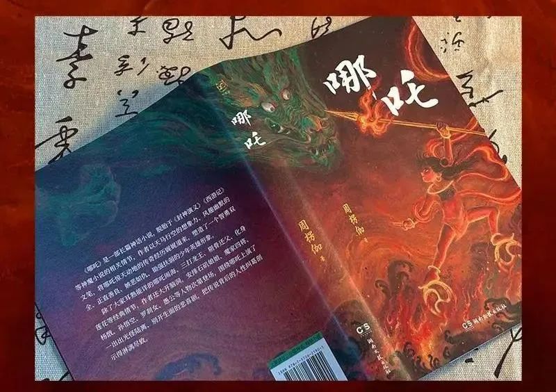 这本书封面书名集书法大家王羲之字,封面插画由知名水墨画师逸书倾心绘制,还原哪吒闹海名场面。